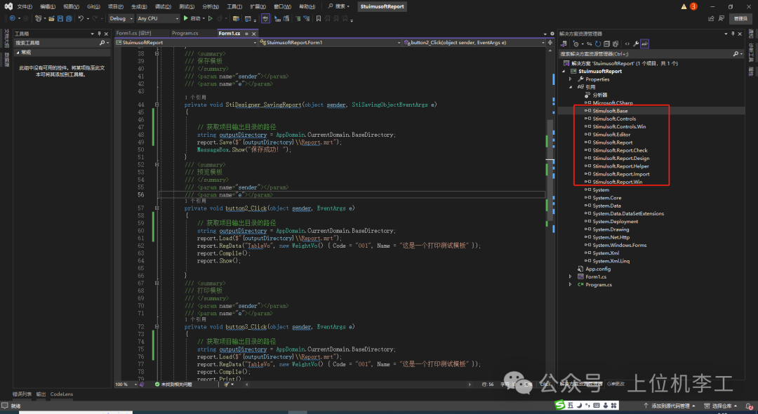 /// <param name="e"></param>private void button1_Click(object sender, EventArgs e){ StiDesigner designer = new StiDesigner(report);
