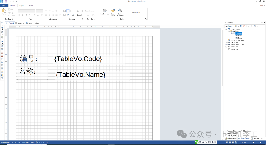 report.RegData("TableVo"new WeightVo() { Code = "001", Name = "这是一个打印测试模板" });