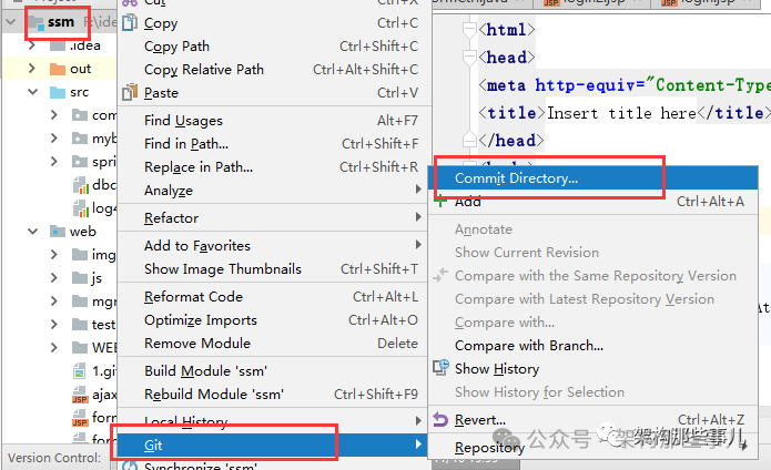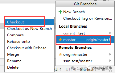2、创建分支点击【new branch】,弹出窗口,如下图: 输入分支名称点【OK】,然后默认切换到该分支。 3、切换分支如果要切换回master主分支,操作如下图: 点击【checkout】 4、在新建立的分支上修改代码切换到之前新创建的分支,修改代码。 5、提交分支到本地库一般情况下只需要将分支提交到本地仓库,不需要将分支提交远程仓库。如果将所有的分支都提交到远程仓库,会让远程仓库杂乱无章。 确保在新建分支下,操作如下图: 弹出新窗口,如下图: 选择要提交的文件,写上提交注释,然后点击【commit】