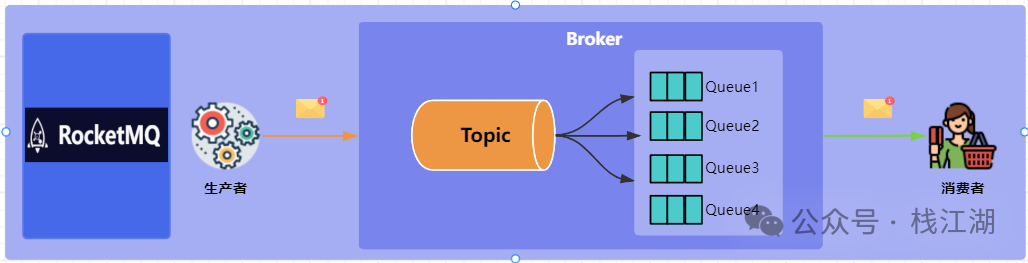 主题(Topic):按主题分类消息,每个主题有多个队列。