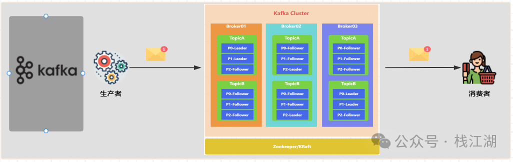 生产者(Producer):将消息发送到主题的分区(Partition)。