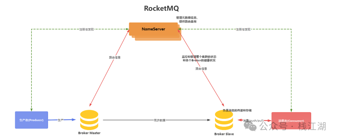 名称服务器(Name Server):管理主题和消息队列的元数据,提供路由信息。