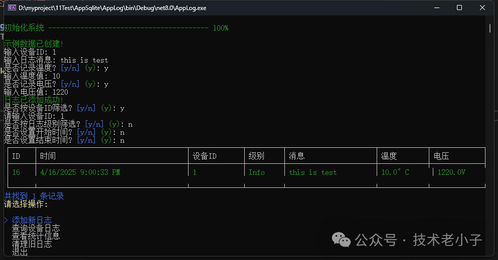 总结 本文介绍了如何使用C#和SQLite构建一个功能完整的设备日志记录系统,并借助Spectre.Console库打造美观的控制台界面。该系统具有以下优势: