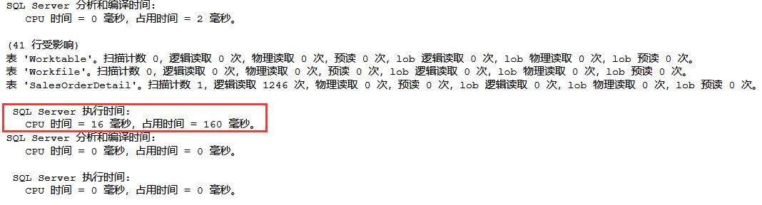 作者对上述语句同时执行多次,针对重复量多的UnitPrice,GROUP BY总的处理效率比DISTINCT高一点点,但是针对重复量低的SalesOrderDetailID,DISTINCT就比GROUP BY快一点了,而如果随着整体数据量的增加,效果会越来越明显。