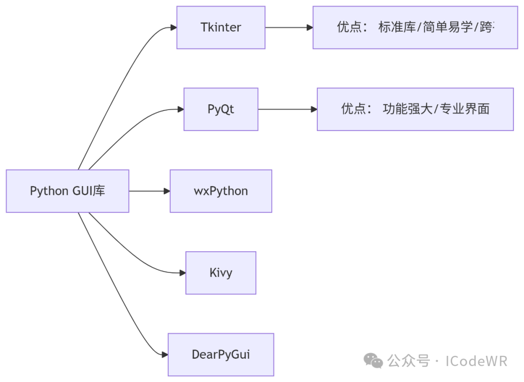 图形用户界面(GUI)编程允许开发者创建可视化应用程序,通过窗口、按钮、菜单等控件与用户交互。Python提供了多个GUI库,其中最常用的是Tkinter(标准库)、PyQt、wxPython等。