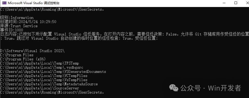 获取日志下的单个记录这里我们以Visual Studio日志为例,输出Visual Studio日志下的所有记录。