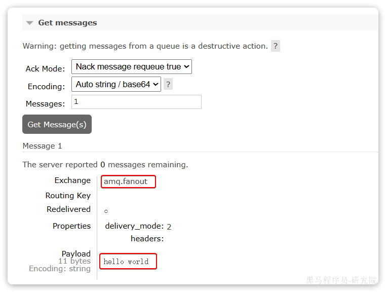 此时,再次向amq.fanout交换机发送一条消息。会发现消息依然没有到达队列!!