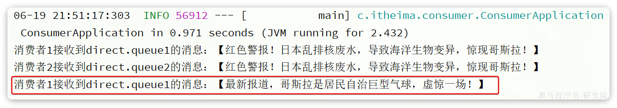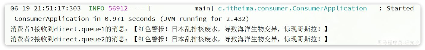 这个时候如果有消费者监听了MQ的hello.queue1hello.queue2队列,自然就能接收到消息了。