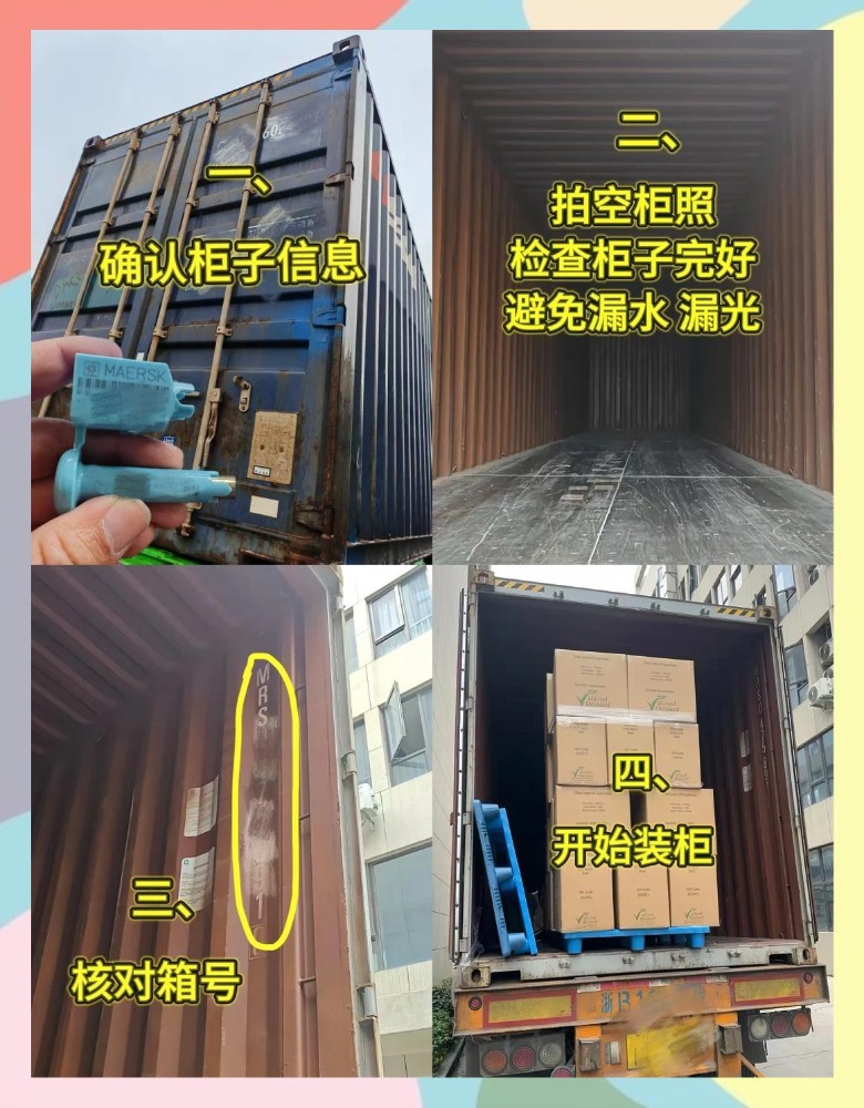 在装货之前,先给集装箱拍几张空箱照,检查一下它是不是完好无损,有没有漏水、漏光之类的问题。