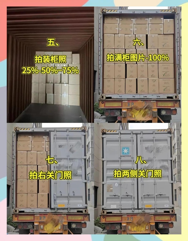 随着装货的进度,分别拍几张集装箱内部25%、50%、75%装货量的照片。