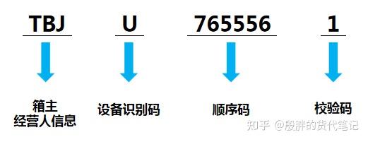 第一部分“箱主、经营人信息”,由3位英文字母组成,一般是箱主自己规定,并向国际集装箱局登记。我国箱主信息通常采用汉语拼音字母表示,如铁道部为TB、交通部为JT、外贸部为WM,所以上边的箱子一看“TBJ”就知道铁道部的集装箱。 第二部分“设备识别代码”,单个英文字母,说明集装箱的类型。像“U”表示常规所有集装箱代号,“J”表示带有可拆卸设备的集装箱,“Z”表示集装箱的拖车和底盘车。 这里要注意下,第一部分+第二部分组合起来也叫“箱主代码”,也整理了些其他公司及其代码参考: