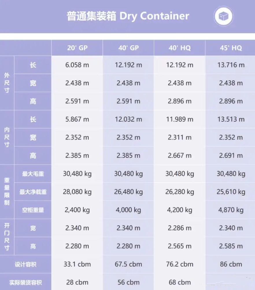 集装箱常用尺寸、箱型、容积有哪些呢?