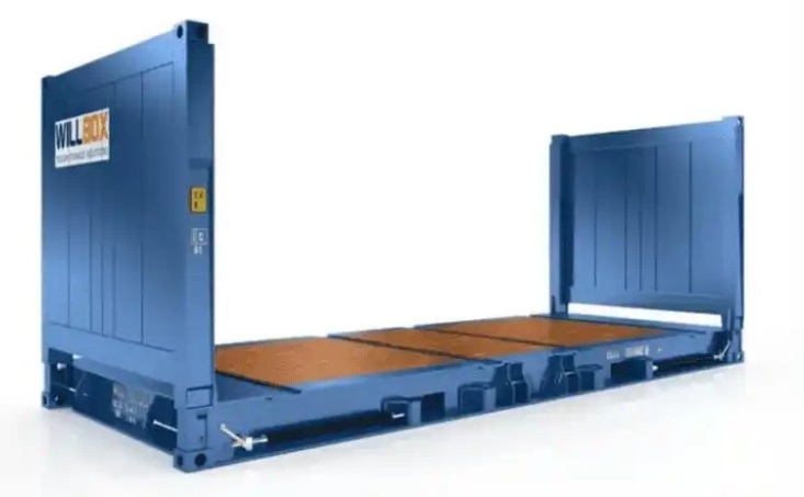 8)框架箱:箱型代码FR;95码22P1,没有箱顶和两侧,其特点是从集装箱侧面进行装卸。以超重货物为主要运载对象,还便于装载牲畜,以及诸如钢材之类可以免除外包装的裸妆货。