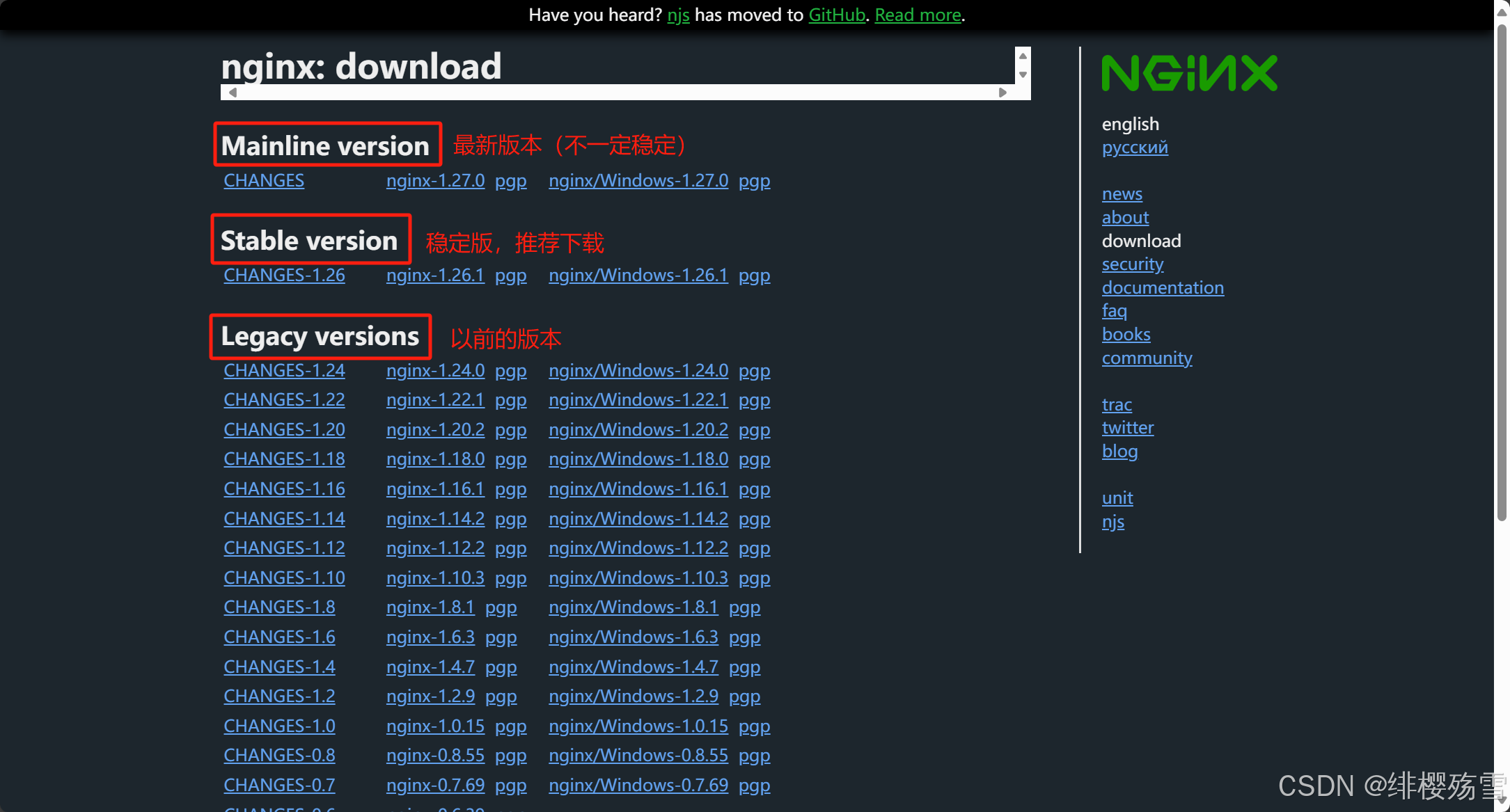 1. 打开浏览器输入网址 https://nginx.org/en/download.html,进入 Nginx 官网