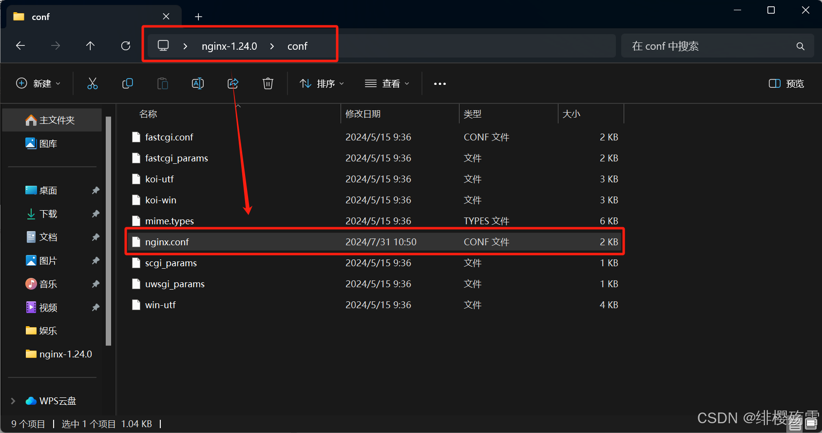 1. 进入 Nginx 目录下,conf 文件夹下编辑 nginx.conf 文件,根据自己需求进行配置