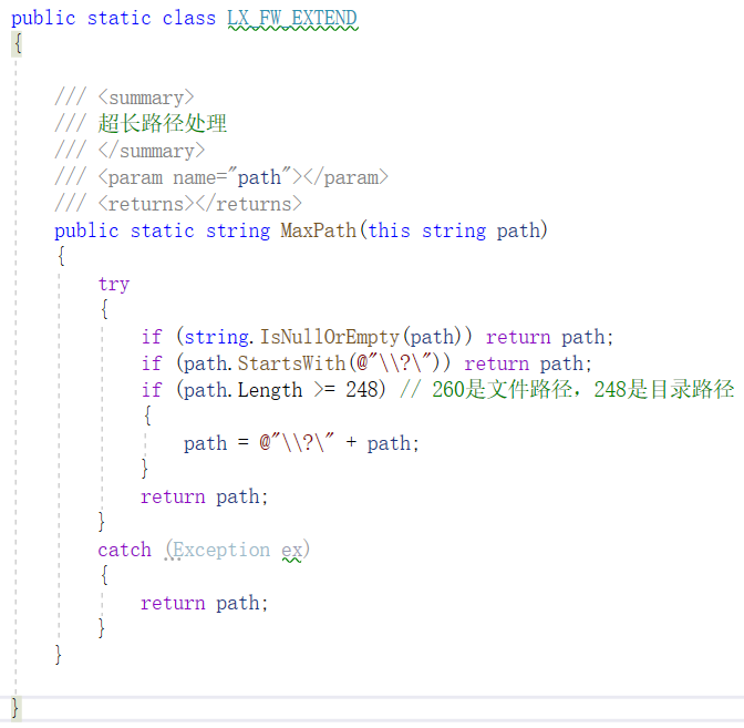 五、开源因为DotNetZip已经不再积极维护,且Nuget上的版本也标记了弃用和风险,所以也就不提PR了, 但在这么多压缩解压缩库中,DotNetZip在易用性上是无与伦比的,所以在很多时候用用还是挺不错的。也基于此想法,正好也将自己之前封装的方法给开源了吧,基于DotNetZip,就两个方法:Zip、UnZip。简单易用、解决了超长路径(MAX_PATH)问题、支持密码、分卷。 开源地址:https://gitee.com/lesliexin/lesliexin.simplezip NuGet:https://www.nuget.org/packages/LeslieXin.SimpleZip 六、结语这次也是遇到了这个超长路径(MAX_PATH)的问题,才想起来修复下,顺便也开源下自己的库。 本篇文章最重要的是给读者一个遇到超长路径(MAX_PATH)问题时一个实操指导,毕竟此问题不止会发生在DotNetZip中,可能发生在任何与文件路径相关的地方,当再次遇到此问题时,该如何一步步去排查定位和处理。 转自https://www.cnblogs.com/lesliexin/p/18930533 该文章在 2025/9/9 9:53:28 编辑过 |