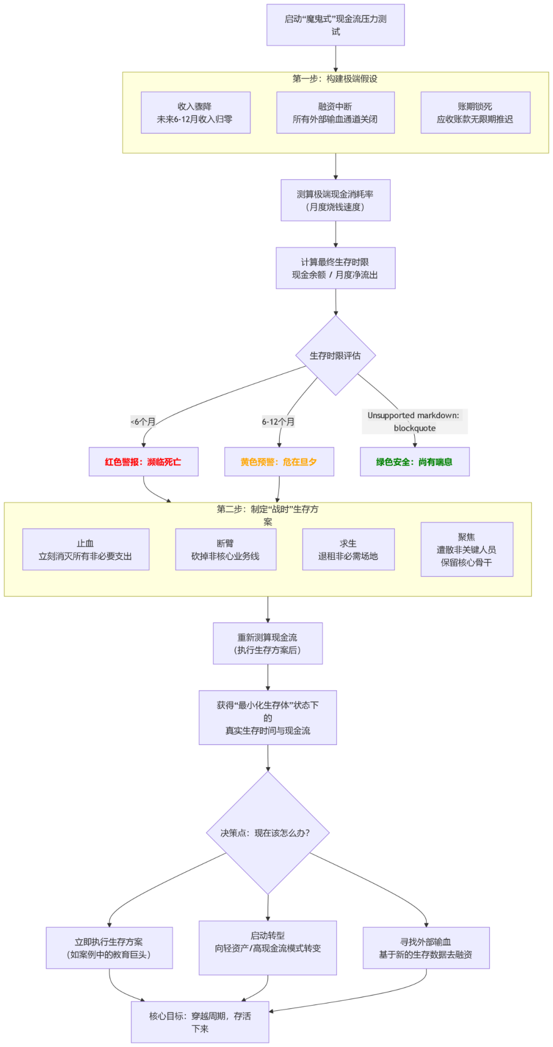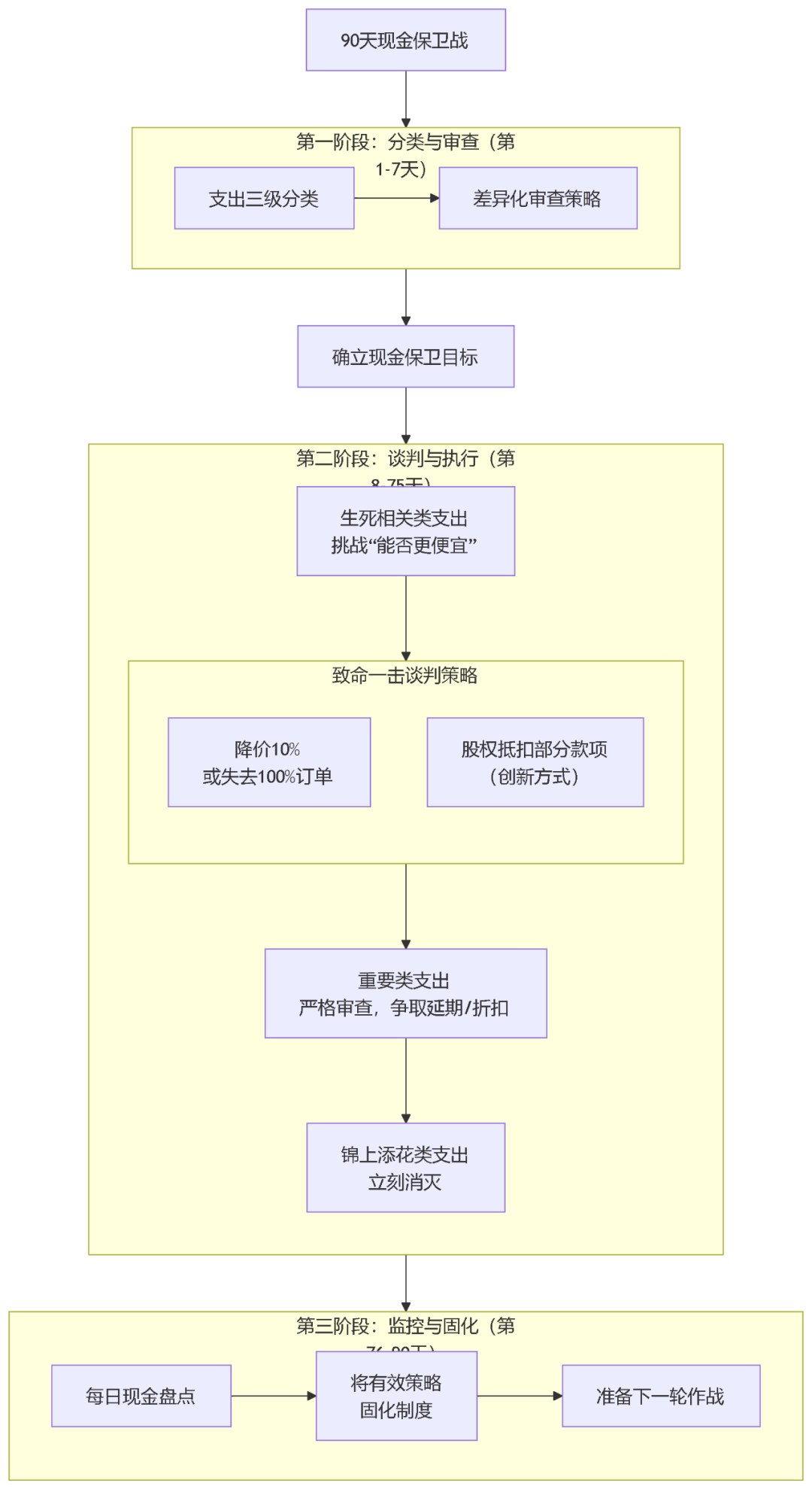 一、认知革命——重新理解现金的暴政 在常态时期,现金是企业的血液;在寒冬期,现金就是企业唯一的氧气。任何对现金的浪漫幻想,都会立刻转化为葬送企业的致命毒药。 军规1:忘掉利润,盯死现金流利润是会计学的魔术,现金流是战场上的弹药。无数公司死在账面盈利但现金枯竭的悖论里。你必须建立每日现金流仪表盘,对未来90天的现金流入流出进行小时级监控。某知名生鲜电商在疯狂扩张时日均交易额破千万却一夜崩盘,原因就是将所有现金沉淀在了无法快速周转的库存上。
