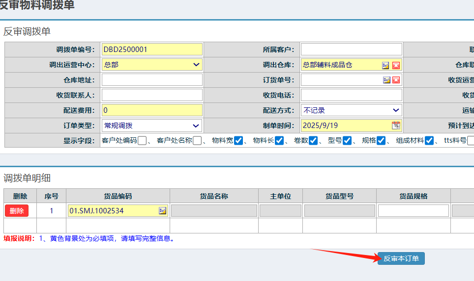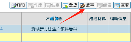 点击一条信息后,背景变色后,点击反审按钮(注意:针对需要修改的已确认的订单进行反审操作)