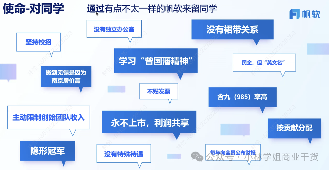 感谢帆软CEO陈炎的分享,从0-15亿+,从毕业后创业至今快20年,这是一个认知、组织、数据驱动增长的故事,是一个在无锡人才密度并不高的地方一路摸排滚打出来的实战故事。 以下是一些围绕公司管理“事、人、钱”印象深刻、引发思考的观点总结。 ![]() 事情(如何管理业务及业务流程): 看十年、谋三年、干一年:十年确认战略、财务目标、客户成功指标、专项目标,三年盘点市场空间和机会点。干一年,围绕客户、流程、组织和人才制定工作计划。 增长:有效增长——有利润的增长——消除浪费,长期增长从目标分析、财务分析开始,消除浪费这个事情要通过一线员工+文化驱动+工具来实现。 ![]() 取舍和客户旅程路径的最优解思考,主动定义“有价值的事情”,利他才能利己:1)选择客户:从非标走向标准化,就意味着不给“非标”资源。2)让客户用起来并分享:搬运最佳实践:让客户用起来,以标杆客户为核心考核,3)实施:帮助客户培养数字人才,利他到利己,65%来自产品,35%来自实施服务。 ![]() 学习标杆、落地适配帆软不同阶段的“业务流程”和规则: 当年最早没有资源、也不知道管理,就在天涯学习华为的管理方法。通过学习不断在建立自己的业务流程,比如LTC的落地适配,赢单的流程对应能力训战。这点让我挺感慨,因为一大票创业公司会觉得大公司那套没用,但关键不是套着用,是理解并针对性适配。 比如所有人都说以客户为中心,落到组织里的规则是:接投诉电话,10秒内不接就转到创始人。 ![]() 数据驱动,先BI自己:市场空间、业务流程、个人绩效等等。 20%的人因为相信所以看见,80%的人还是要看到各种数据来相信,比如公司的客户空间。 也通过数据推进管理。比如流程关键控制点分析,管理线索、机会、应收。比如从经营、业务、科目、专项上纲举目张。同样通过数据分析来看市场leads和销售转化到底“谁有理”。 ![]() 人(建立和落实组织文化): 创始团队的决策机制——共识营:无法什么事情都聊(吵不完),只探讨最重要的几个事,让战略、客户、组织、文化、分配达成共识。 同学文化:团队成员主要来自校招,因此称呼团队为同学。校招的筛选标准是招优秀的人,也会通过考试去看他们的底层逻辑———学习能力。而不是只看“学历”,或者让学历高的人觉得大家要为他服务。 公开财务报表:大家连父老乡亲可能都觉得公司赚大钱了,实际上通过报表才知道费用和成本是多么高,更能够“上下同欲”。 永远思考怎么让流程最短:比如不贴发票,报销慢影响应届生体感。业务团队服务客户,本部团队服务业务团队,合伙团队服务本部团队落地。甚是通过财务体系优化来实现了“降本”。 没有裙带关系:“不因为自己哥哥过得一般,就给他介绍生意” ![]() 钱(思考如何分配、激励,才能让事情和组织转得更好): 以贡献者为本,“不是对所有人好”:基于利润、客户满意度生成薪酬包,按照梯队核心进行“激励分配”。事先约定有价值的东西:针对山头项目给奖金。 财务核心指标中除了关注净回款、人均净回款、储备金,也关注人均可支配薪酬和研发投入——很大提高人才质量。提高可支配薪酬。 总而言之,围绕目标管理、流程建设和运营、精益管理和分配不断下功夫。 最让我感动的是,我问最早怎么招到人,他说是“真诚和愿景”,有的人选聊了8个小时,第二天还带着他去跑客户去感受。而当年吹过的“牛逼”现在也算是实现了。第二是谈及不上市时候他说,是为了“留住同学”,如果他是马斯克,当然可以“拿的最多”,而他认为、自己不是,而是同学们在创造“更大的价值”,所以要“克制”。 ![]() “虽然我们参与的同一场竞争,但是我们彼此看到的却是不同的作战地图”。因为相信,所以看见。 阅读原文:https://mp.weixin.qq.com/s/BOQ7NnQgUcDrEAsln1rL7A 该文章在 2025/9/20 11:08:30 编辑过 |