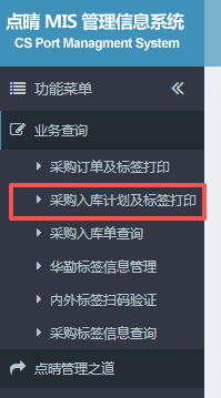5.进入系统之后,在左侧功能菜单里点击“采购入库计划及标签打印