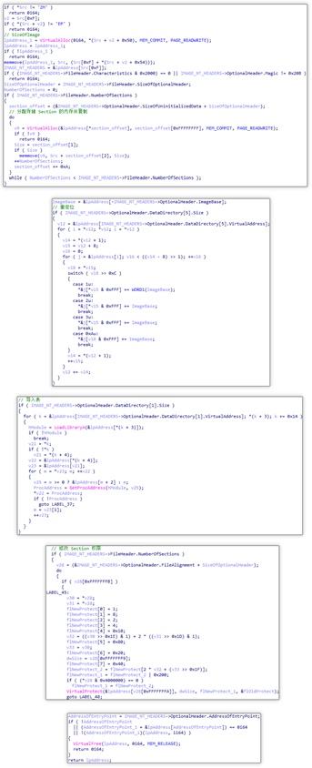 加载推广模块并调用入口点和 cgbp 导出函数:随后,将解密后的推广模块以手动加载的方式载入内存。在完成检查 PE 头、进行 Section 映射、开展重定位处理、修复导入表以及修改 Section 权限等操作之后,会调用模块入口点以进行初始化。之后,通过遍历导出函数的方式获取 cgbp 导出函数地址,并调用该函数,由此进入推广模块的主要逻辑。