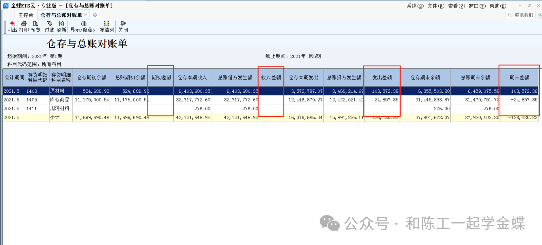 实际业务中,企业通过KIS专业版实现业财一体化,以提高工作效率。KIS专业版的业务单据可以直接在存货核算模块生成凭证,并传递到总账。同时,系统提供了与总账对账的功能,可以核对存货核算系统的存货余额及发生额与总账系统存货科目余额及发生额。接下来,我将归纳期末对账中遇到的各种对账不平情况,并提供相应的解决方案。