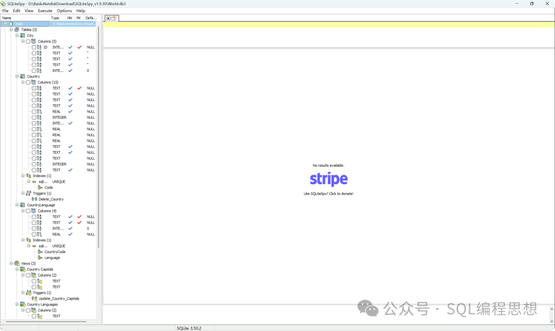 SQLiteSpy 是一款快速、轻量级的免费 SQLite 管理工具,提供了图形化的数据操作界面。