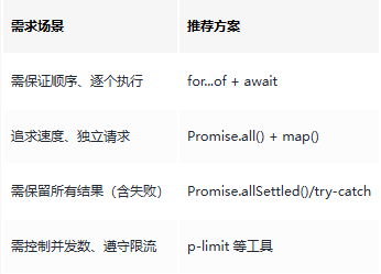 JavaScript 异步能力很强,但循环里用 await 要“按需选择”,核心原则如下: