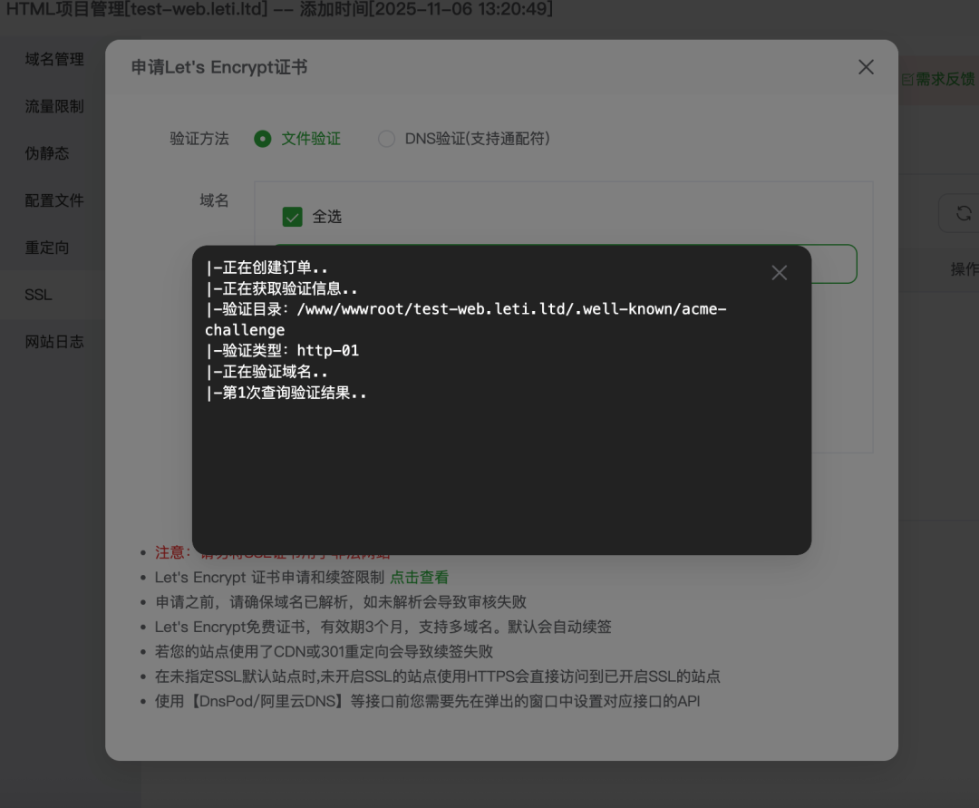 SSL 配置同上,不再赘述。这样配置好以后其实有一个问题,直接输入https://test-web.leti.ltd/会跳转到登录页面,但这时如果你刷新页面的话,会提示 404。