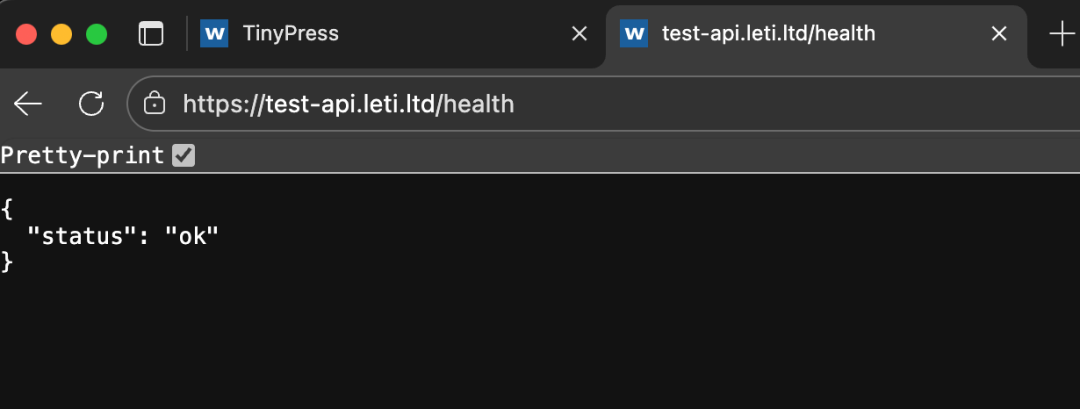 配置完 SSL 证书后,可以输入 URL 测试了,这时 API 项目的反向代理就配置好了。